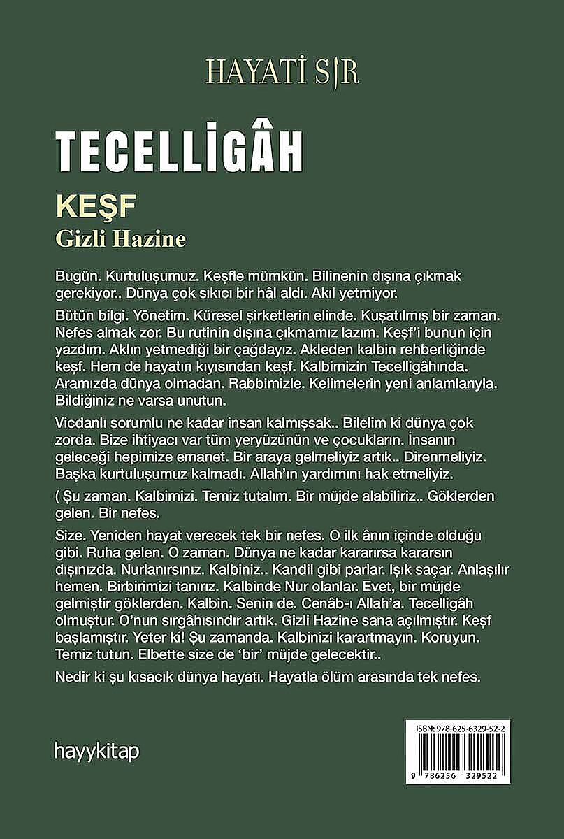 Bütün bilgi. Yönetim. Küresel şirketlerin elinde. Kuşatılmış bir zaman. Nefes almak zor. Bu rutinin dışına çıkmamız lazım. Keşf’i bunun için yazdım. Aklın yetmediği bir çağdayız. Akleden kalbin rehberliğinde keşf. Hem de hayatın kıyısından keşf. Kalbimizin Tecelligâhında. Aramızda dünya olmadan. Rabbimizle. Kelimelerin yeni anlamlarıyla. Bildiğiniz ne varsa unutun.
